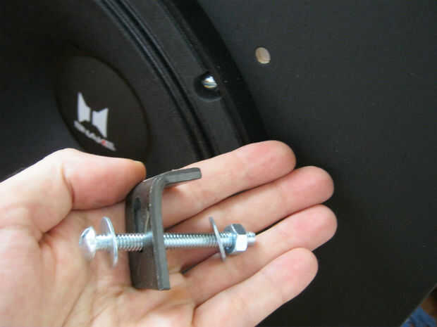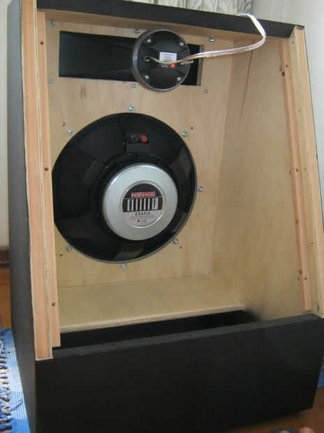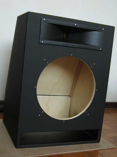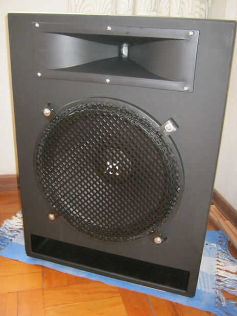 El woofer y bocina de plástico fueron asegurados con tornillos y tuercas de 3/16", entonces el controlador se atornilla en el cuerno. Rejilla de protección del woofer se fijó con tornillos y tuercas de 1/4".
