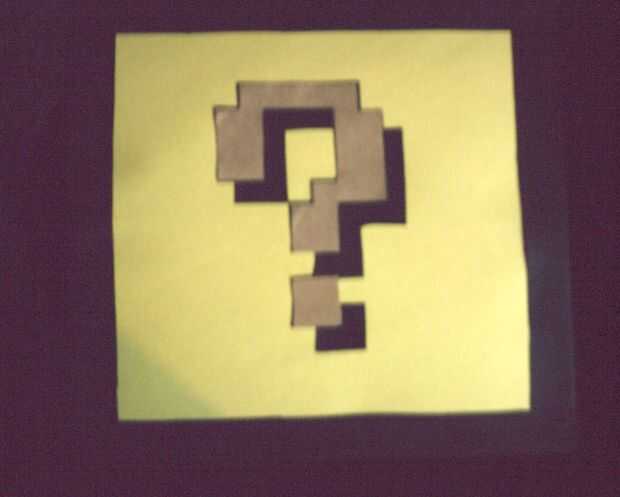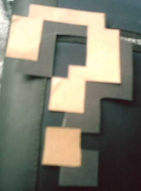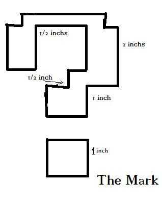 El marrón de signo de interrogación puede hacerse siguiendo la idea general del esquema que se muestra. Además, la sombra también puede hacerse siguiendo el diagrama. Los segmentos de línea discontinua en el diagrama de sombras son Mostrar donde se sentará el signo de interrogación (tu sombra debe permanecer como una pieza entera, si usted decide hacer los segmentos de línea sólida y roto en negro). Mis medidas eran incrementos de 1/2 una pulgada. Esperemos que estos diagramas le dará una idea general.