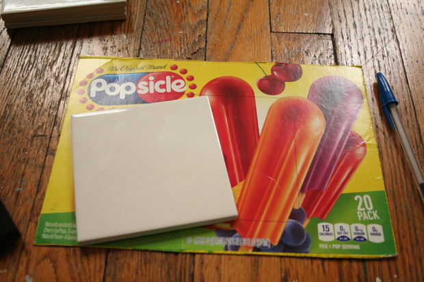 Para empezar, corta las cajas de cereales para el tamaño de su cerámica. Puede hacer esto midiendo alrededor de la baldosa en una sola pieza de la caja con una pluma y cortar la Plaza.