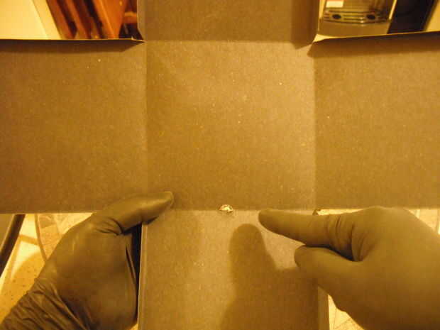 Ahora hacer un agujero en medio de una de las líneas en su cruz. Se trata en el fondo de nuestra caja cuando es formado. Esto es donde nuestro cable USB va a pasar.