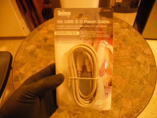 Ahora agarra el cable USB que compramos en la tienda de 99 centavos solamente.