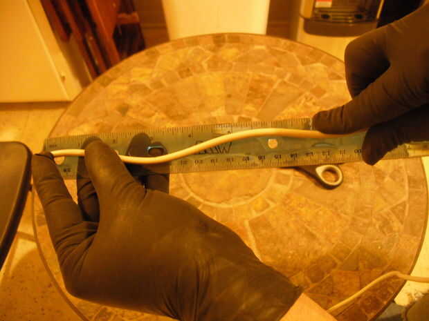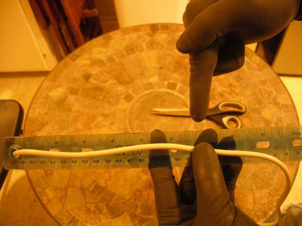 Ahora vamos a salir nuestro gobernante y mide siete pulgadas desde el extremo del cable USB cortado. Esta es la parte que vamos a pelar más adelante.