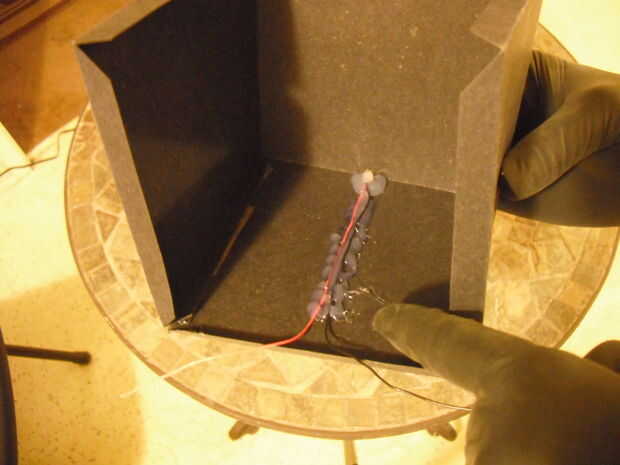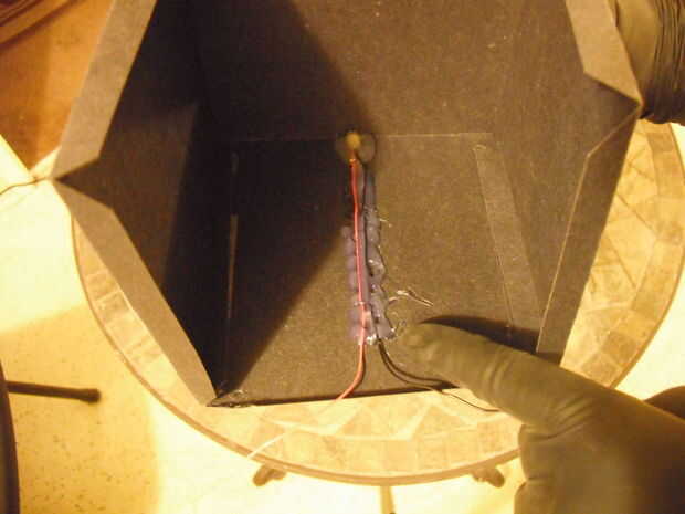 Ok vamos a enderezar los cables un poco para verte bien y limpio y luego use la pistola de pegamento caliente para pegar todo abajo. Utilizar tanto pegamento que quieras porque es lo único que mantendrá nuestros cables garantizados para el fondo de nuestra caja.