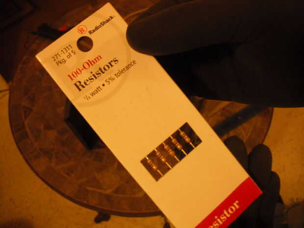 Bueno no realmente, jajaja. Tenemos que añadir resistencias a andode(+) lado izquierdo de nuestro LED otra manera quemará inmediatamente! Así que coge su paquete de resistencias y tomar dos de ellos.