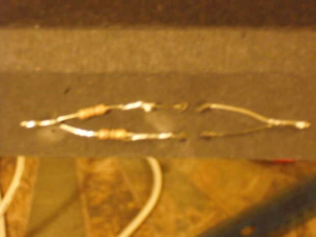 FYI-probablemente tendrá que cortar las piernas de los diodos y resistencias con las tijeras para hacer un poco más corto debido a son demasiado largos. Cuando termines debería verse como esto.