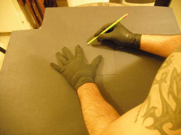 Ahora agarra la plaza que a cortar y colocar en el centro de la cartulina negra. Con tu lápiz, traza el cuadrado sobre la cartulina negra. Ahora debe tener el contorno de un cuadrado sobre la cartulina.