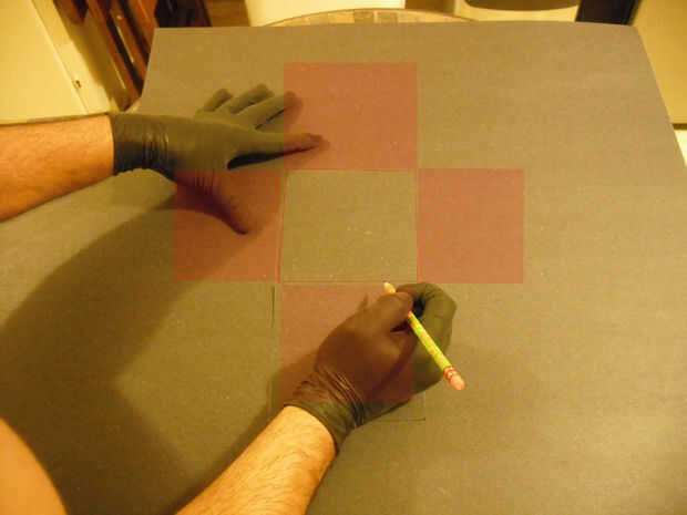 Ahora permite agarrar nuestro corte cuadrado y trazar 4 plazas más con el lápiz. Sólo tiene que utilizar cada lado de la plaza que remonta en el paso cuatro para orientar el corte hacia fuera. Cada nuevo cuadrado que remontamos compartirán una línea con la primera plaza que trazada en el paso cuatro. Puso de relieve las zonas donde hacemos el trazo en cajas rojas. Cada área resaltada rojo es para mostrar donde necesitamos trazar un cuadrado con la corte. Se trata de cosas de jardín de infantes. Pero es divertido.