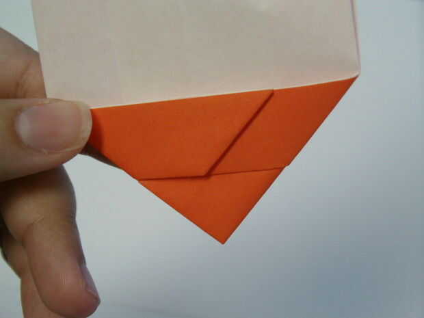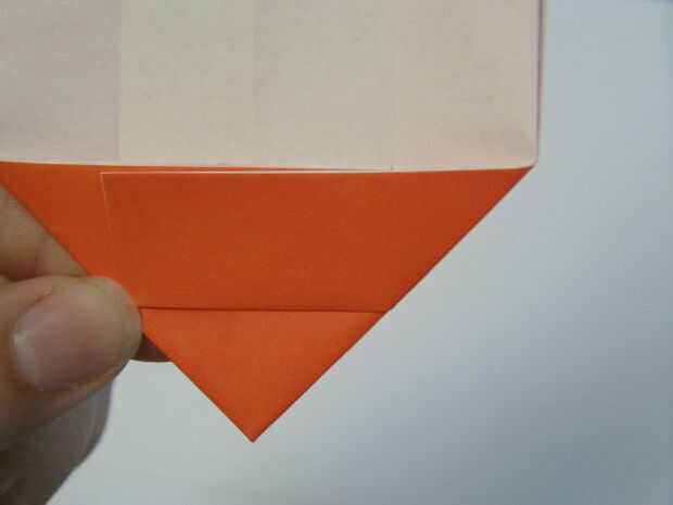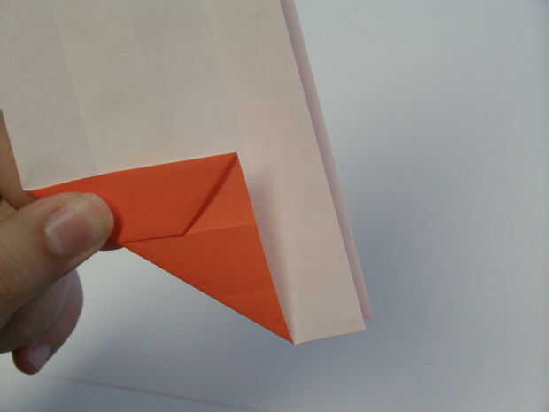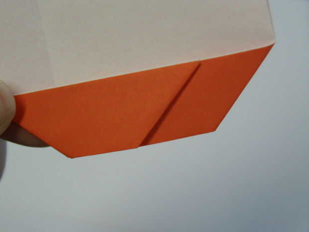 Traer la esquina inferior derecha hasta la línea de pliegue de la izquierda.