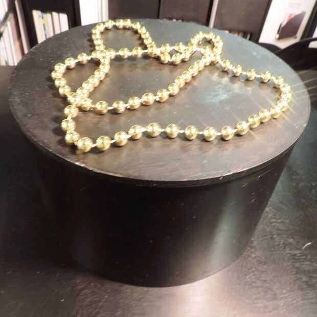 He utilizado una cadena de granos a la tapa con una pistola de pegamento. Usé mi pistola de pegamento de más pequeño y muy pequeños puntos cayó aquí y allá. Después de un par de puntos, presiona algunos de los granos en la cola y había bajado más puntos e hizo esto hasta que todos los granos estaban pegados. Pegar cada tira pero sólo un grano aquí y allá según donde estaban los puntos de pegamento. Terminó un diseño relajado. No intentes hacer demasiados puntos de pegamento en un momento como el pegamento se seca muy rápidamente