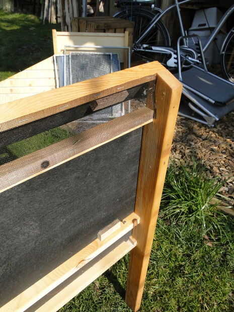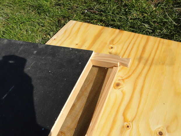 La diferencia aquí va a ser la abertura de ventilación inferior y debe ser cubierta por un pedazo de pantalla de la mosca. Para resolverlo más adecuadamente, puede agregar otro listón de 10x10m m como se puede ver en las imágenes.