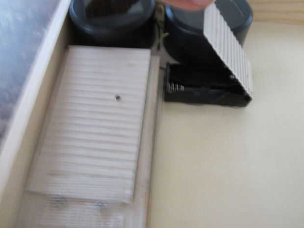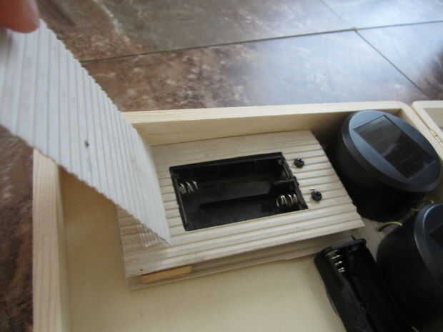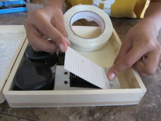 Cortar una pieza del material opaco a los tamaños de los paquetes de baterías y con cinta adhesiva a las baterías como se muestra arriba. La cinta también actúa como una bisagra. Estas tapas bloquearán el calor solar dañe las baterías recargables.