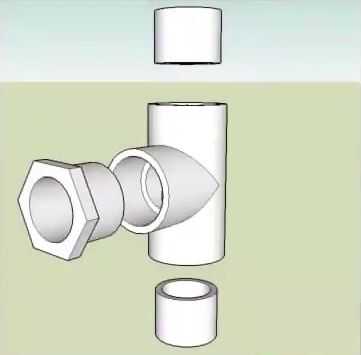 -Tomar 1"' t ' guarnición del PVC y tubería de 2" de pegamento dos pedazos en él a lo largo de un eje que tiene dos agujeros en la ' t '