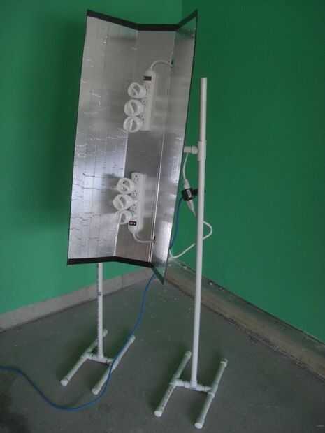 -Ahora en el reflector en la mitad del mismo a lo largo del tornillo de altura en algunos PVC tubería de monta (véase la primera foto) con 24" pedazo de 3/4 PVC capturado en ella