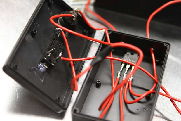 - Arrastre el otro cable en el lado de la caja del del emisor. Se trata de la negativa para el audiosource. (aunque es AC "no es ningún negativo")