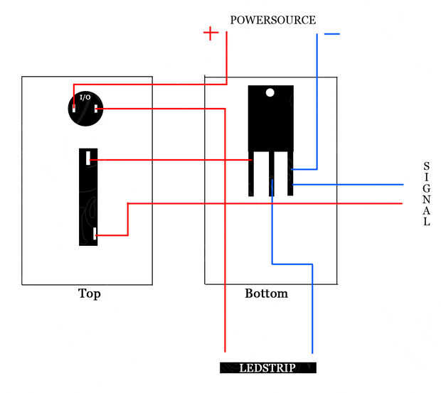 - Desde el interruptor del agujero inferior de la izquierda. Cortar aquí, es donde se conecta el LED.