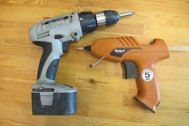 -taladro, pistola de pegamento, goma y plástico ataduras de cables