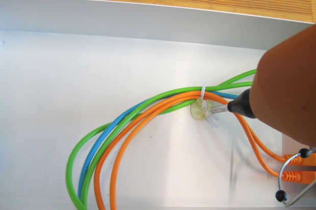 Luego debe pegar cuidadosamente el agujero. Después de Conecte todos los cables USB necesarios.