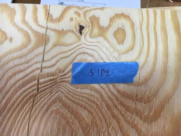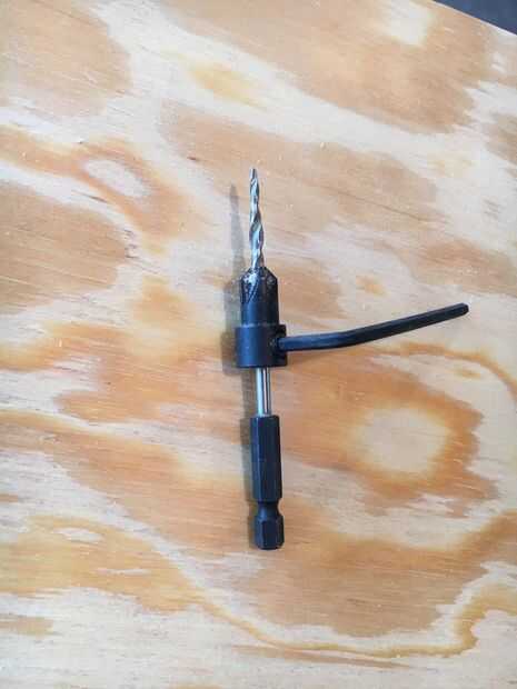 - Hacer una plantilla para la colocación del tornillo usando cinta adhesiva o cinta de pintor azul. Se necesita uno para el final de 11,5 pulgadas y para el lado de 16 pulgadas. Me apilar piezas similares uno encima del otro y ajustar la profundidad de la broca piloto en el avellanado para que perforado 1/8 de pulgada por debajo de la pieza que he trabajado en y esta izquierda orificios para la pieza siguiente. Así que sólo tuve que medir una vez y la colocación del tornillo era idéntico.