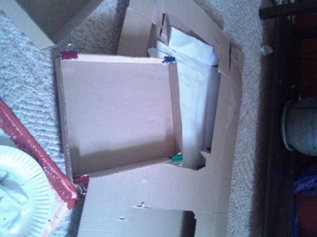 Simple DIY cartón caja de almacenamientoVi esta idea (la original fue hecha de la madera y considerablemente más grande) en pinterest que me dio la idea de una versión Mini, algo mucho más sencillo, que pop en el armario o peor en el piso y todavía b