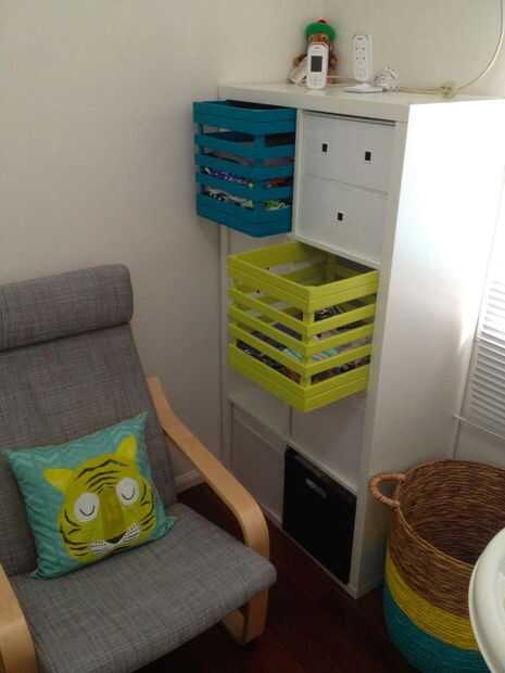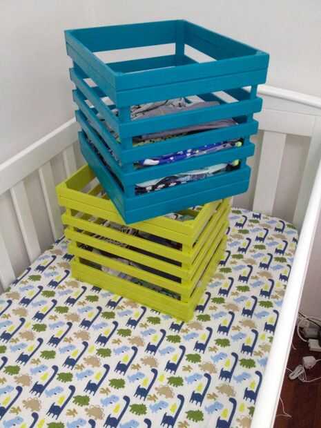 Hice estas cajas de almacenaje de estilo cajón para nuestra sala de guardería de hijos. Mi esposa no estaba contenta con los baratos que teníamos así que hice estos en su lugar y les pintó del mismo color para que coincida con el resto de la habitación.