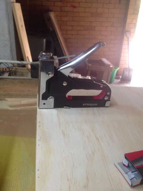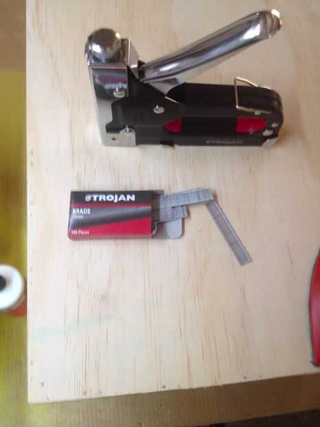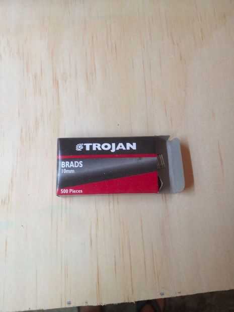 Brad Nailer (compré una engrapadora de mano que también disparó 10mm clavos del clavito) era $22 en mi almacén de hardware local.