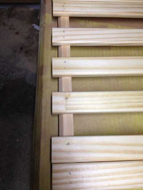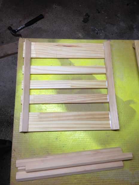 > Aplique pegamento de madera estándar en cada extremo y coloque firmemente hacia abajo. Cuando todos se pegan, utilice la grapadora/clavadora brad para fijar cada uno en su lugar. Esto no es estrictamente necesario pero hará una mejor caja fuerte.