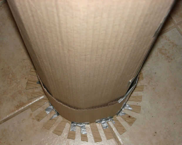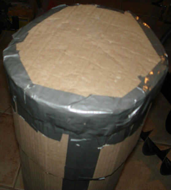 Utilizando simplemente una caja de cartón, cartulina, pintura en aerosol blanco barata, brillo negro y plata tarjeta stock de papel, un sombrero de fiesta plata holograma, un tapón de jabón de lavandería, una pistola de pegamento y algunos artículos