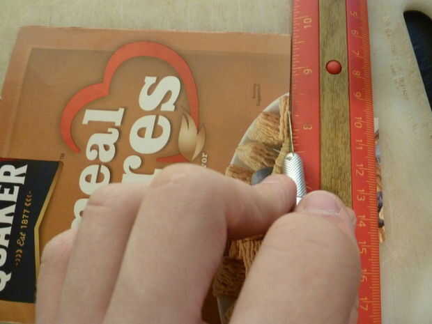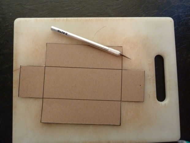 suavemente asegurándose de no recorrer todo el camino, cortar una línea en cada una de esas líneas. Esto es para crear una Unión que hará construir el cuadro mucho más fácil. Como usted no presiona muy duro, a trabajar. Utilice la regla como guía durante el corte (cuadro 2).