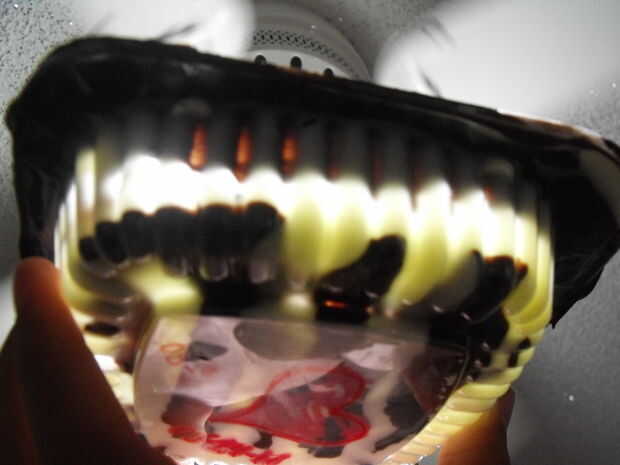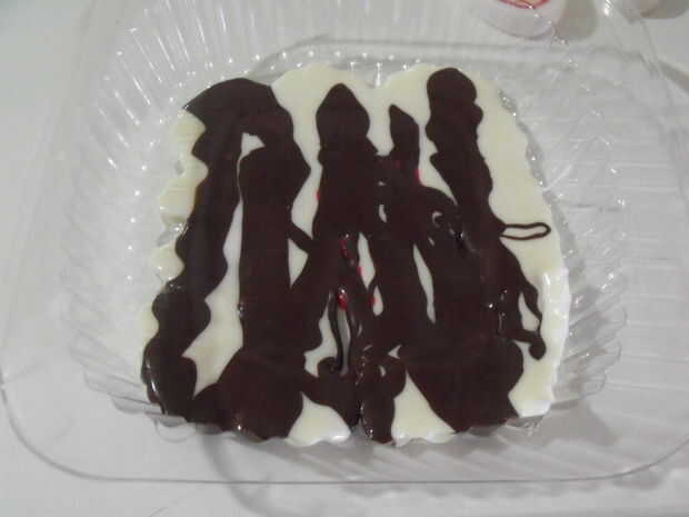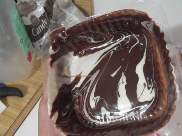 Deje la caja en la nevera durante 5 minutos y el vertido más chocolate para obtener una capa uniforme hasta que estés feliz