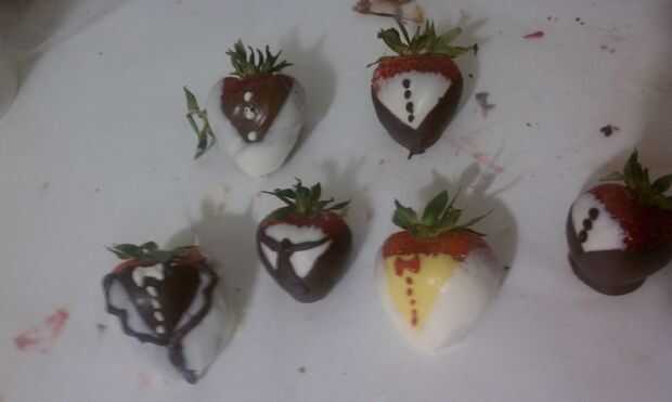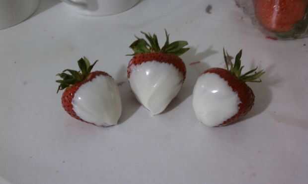Para esto primero se sumergen al frente de las fresas en el chocolate blanco después de enfriarse se dip los lados y agregar algunos botones y listo.