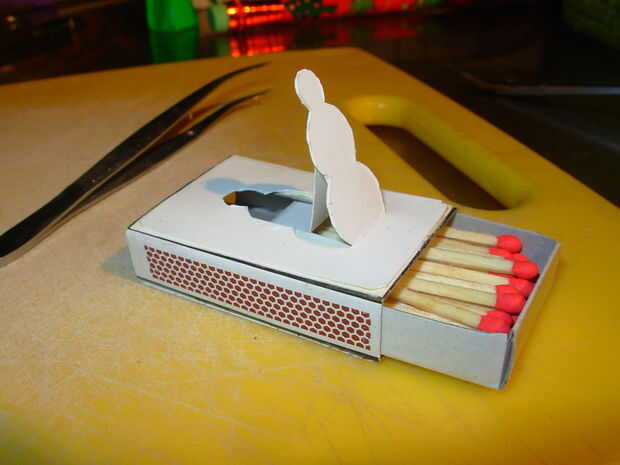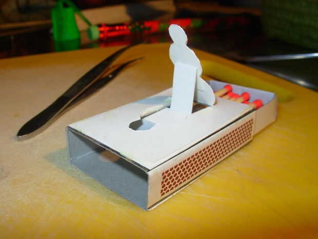Paso 7: Pegar surgen la capa a la caja de cerillas y empujador de