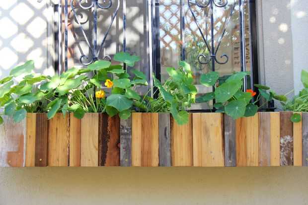 Hice dos cuadros, uno grande para la ventana de la cocina que tiene una variedad mixta de Capuchinas creciendo en él. La otra caja es un poco más estrecho - tamaño más adecuado para la más pequeña ventana adyacente. Esa caja está creciendo una planta trepadora llamada Asarina Scandens "Joan Lorena" con flores de color púrpura que ha sabido para ser un buen escalador. Ya está empezando a la fluencia de las barras y darnos un poco más de privacidad 'natural' en la ventana del cuarto de baño.