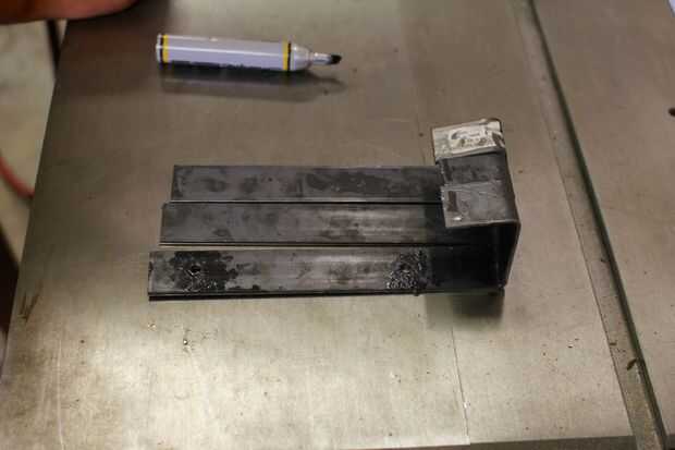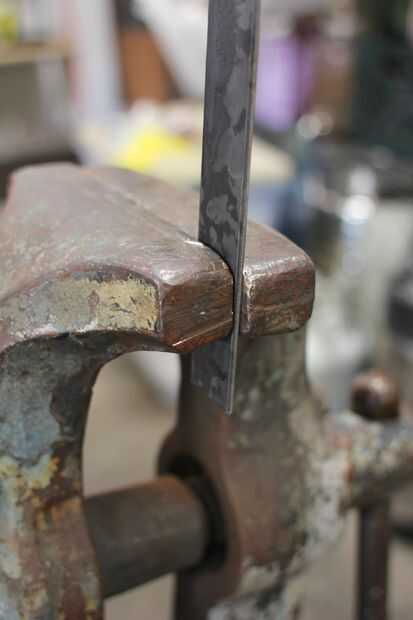Hacer un 90 grados doblar alrededor 2" en de un extremo. Exponer otra pulgada o dos de acero en el vicio y hacer otro de 90 grados de la curva.