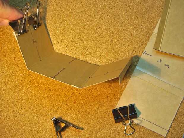 Sujete los bordes tanto doblados ahora con los clips de papel para mantenerlas en su lugar al ensamblar. Si te gusta puedes agregar algunos pegamento entre antes de sujeción.