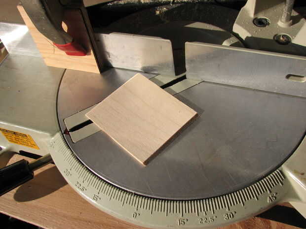 1. cortar las piezas de gran tamaño pero agradable y cuadrados. Me arrancó de mi sierra de mesa luego en rodajas la Sierra de cortar. Utilice una hoja de muy buena para chipout mínimo. Sostenga cada pieza firmemente a la cerca y a los bloques de la parada para que sus cortes son verdaderos.