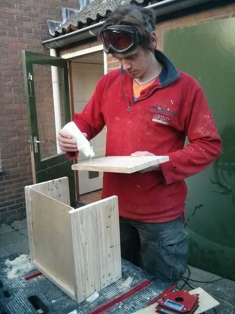 6. había marcado de la parte inferior de la madera contrachapada menos 1 cm, luego tomó la caja y mide 2 cm de la parte inferior.