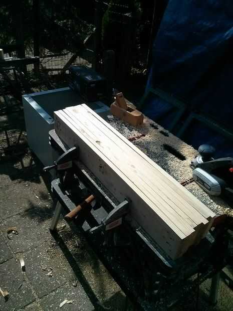 2. cepillar y lijar todo. Puesto que sólo tengo un cepillo de mano y no las herramientas grandes o la experiencia para hacerlo mejor con las herramientas más pequeñas, todas las tarjetas todavía estaban muy curvadas y torcidas. Se ven en las fotos, pero no son.