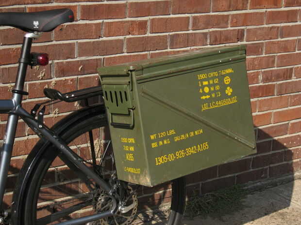 Motos alforjas hechas de cajas de munición de plástico
