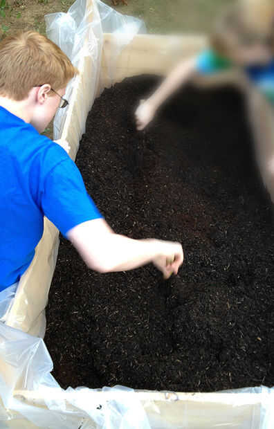 Nota 1: Para la primera capa (fondo) se utilizó arena de parque infantil en la mayoría de nuestras cajas, pero no todos. Esto permite un drenaje adecuado y la retención de humedad. Para algunas de nuestras plantas, riego frecuente era necesario, pero no agua estancada o suelo demasiado saturado. Así que para las plantas y para su lado de la caja, utiliza un montón de arena en la parte inferior y también algunas en el suelo que hemos elegido las plantas de mezclado. Sus opciones pueden diferir de los nuestros mucho. He visto a otros usar rocas del río, cantos rodados o los pellets de poliestireno para dar adecuado ambiente cada vez más la Fundación de drenaje necesaria para el éxito. Que baboso, blanco de partículas que se hincha con agua y lanza lentamente en el suelo con el tiempo es cosas grandes también.