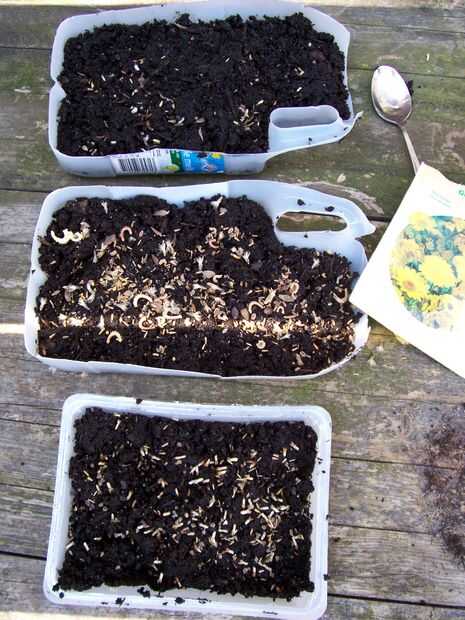 Ahora pueden sembrar las semillas en las cajas. Lea las instrucciones en la parte posterior del paquete así como el proceso muy un poco dependiendo de qué semillas elegir.