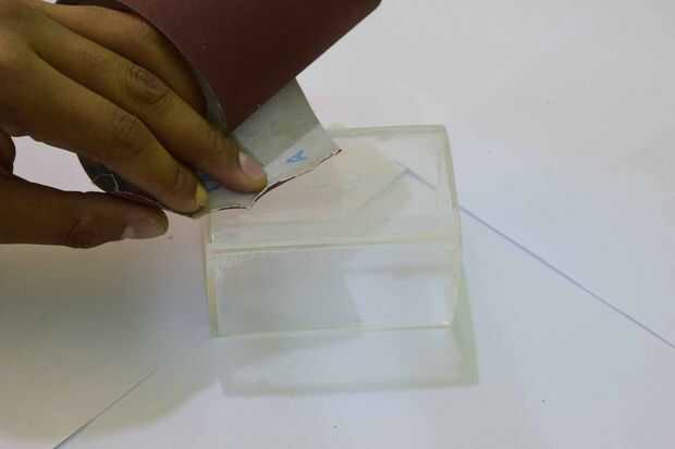 No importa cómo te esfuerces la caja no tendrá bordes perfectos para hacerlos mejor tienes que lijar hacia abajo para que todas las partes incluyendo la parte superior hueca es más plana posible.