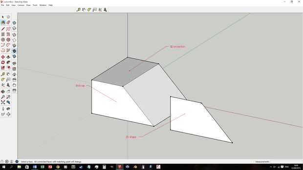 Este método funciona mejor con prismas (proyecciones en 3D de formas 2D, a través de la protuberancia). EN el cuadro final, dos casquillos de extremo no se deslizarán, para revelar un doblado 'lazo' de espuma (ver diagrama). Tiempo y plan de su caja, lo pagará.