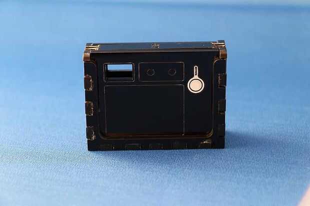 Los paneles frontales y posterior deslizándola para revelar un compartimientos para una capacidad total de 8 tarjetas SD. El diseño cuenta con manantiales de vida en los paneles correderos para que cierre en su lugar. El visor es tanto así que cuando ese lado de la caja está vacío puede mirar a través de ella como en una cámara real!