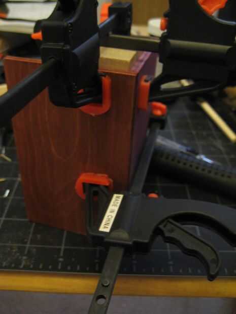 Resultó mucho más fácil al bloque cuadrada de madera de uso sólo para definir el ángulo recto y luego fije con abrazaderas los lados al bloque.
