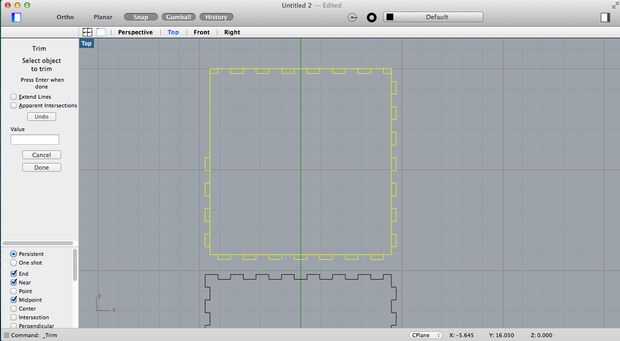 4. me deshice de las extremidades en mis lados de la caja con mi polilínea y eliminación de los vectores que no quería. Esto permitirá una superficie lisa para poder sentarse en tapa. No se olvide a todo! Referencia a la tercera imagen.
