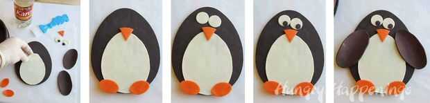 Decorar la tapa de la caja en forma de huevo de chocolate. Unte una pequeña cantidad de jarabe de maíz en la parte posterior del huevo blanco y presione sobre la tapa de chocolate. Ligeramente cepille el jarabe de maíz en la parte posterior de los óvalos naranja y coloque en la base del huevo blanco espaciado alrededor de una pulgada para los pies. Coloque el pico del triángulo naranja en la parte superior del óvalo blanco. Fije los ojos en blanco y luego añadir a los alumnos. Forma los dos óvalos oscuros en las alas, curvando hacia arriba los bordes. Jarabe de maíz del cepillo hacia abajo en el centro en la parte posterior de las alas y presionan sobre el huevo de chocolate a cada lado del óvalo blanco. Puede colocar sus piezas utilizando chocolate en vez de jarabe de maíz, pero se mostrará a través de las decoraciones blanco ligeramente.