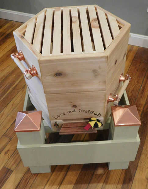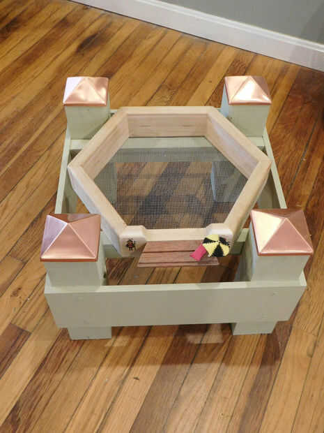 Ha habido varias persona y un ejemplo comercial de una colmena hexagonal. No hay planes existen para uno. Esta es una primera y comparto esto con amor y entusiasmo, gratis. He sido diligente sobre los métodos y las explicaciones y Bienvenido cualquier comentario o pregunta.