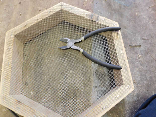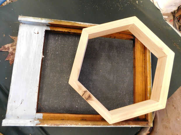 ~ Tuvimos un viejo fondo blindado de una colmena Langstroth que quité para utilizar para mi blindado inferior.