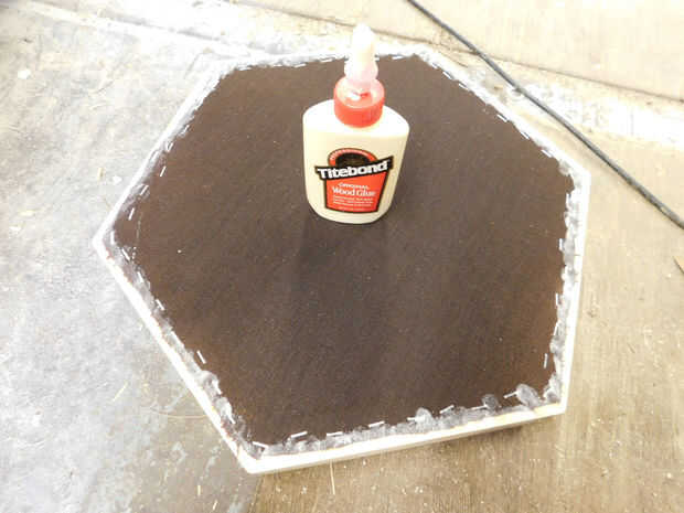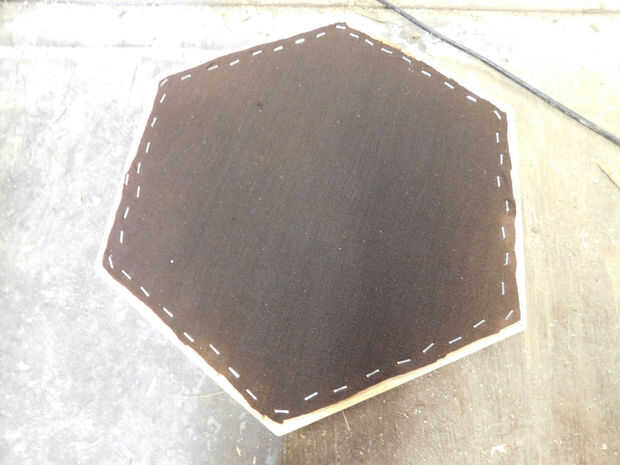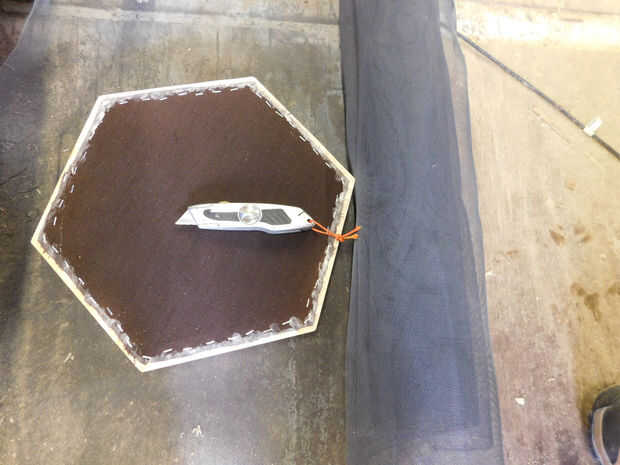 ~ Una pantalla hexagonal de la misma forma se corta. Fibra de vidrio es buena, fácil de cortar con poca distorsión. El propósito de esto es que va entre la caja del tejido y el cuadro debajo, protegiendo la ropa de cama (o algodón) de ser comido por las abejas. No desea que sus virutas de caer por debajo de ellos!