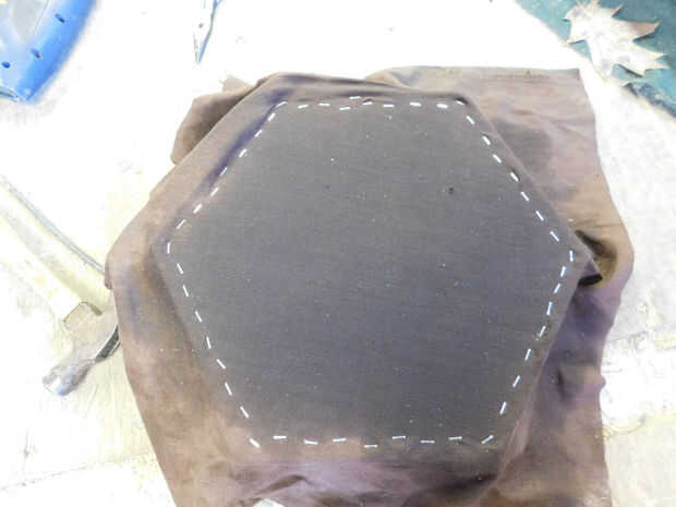 ~ Cortar la tela sobrante, cuidadosa de no cortar demasiado cerca a las grapas.